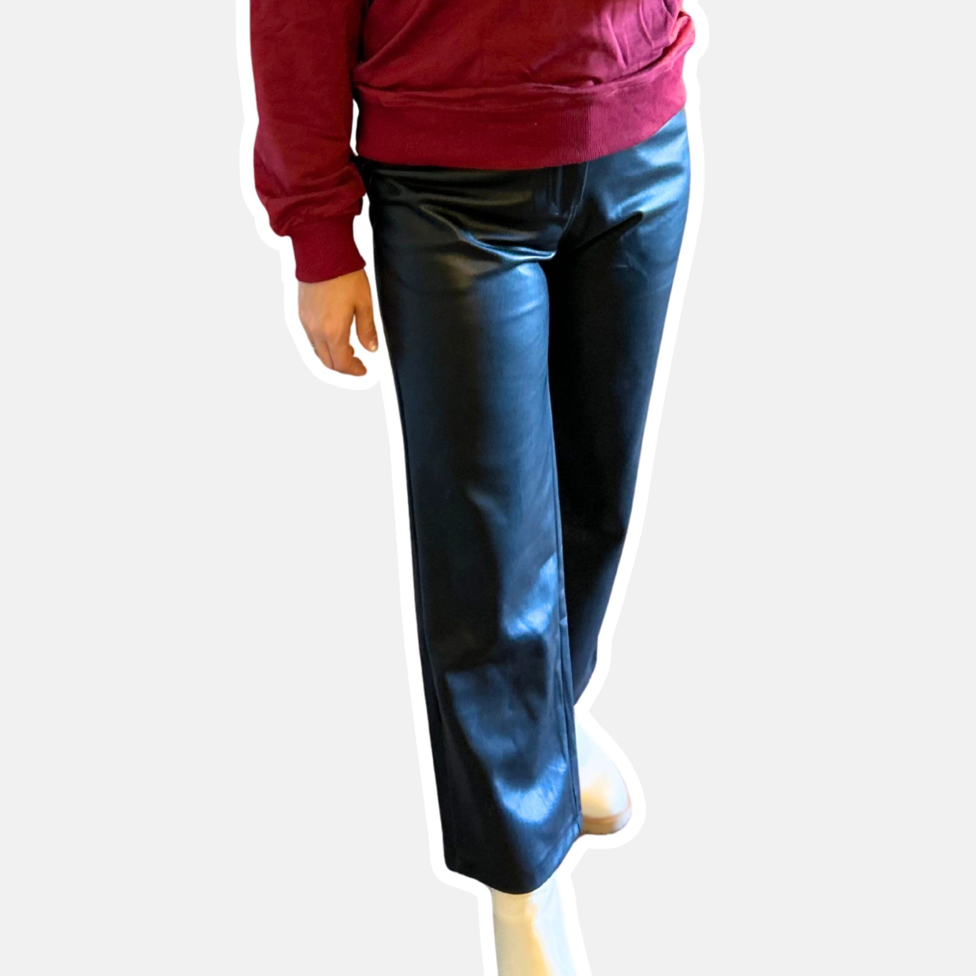 Black Faux Leather Cropped Pants