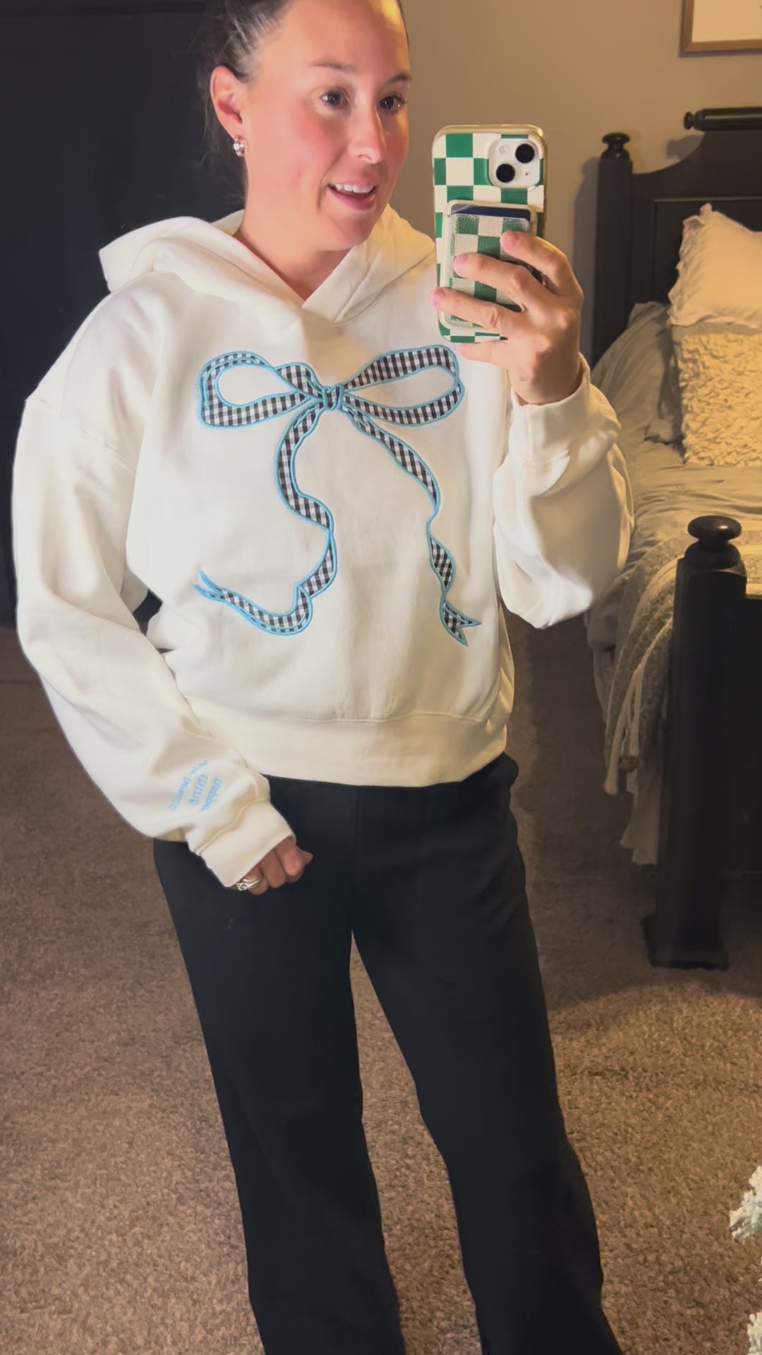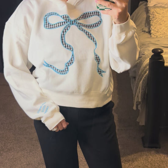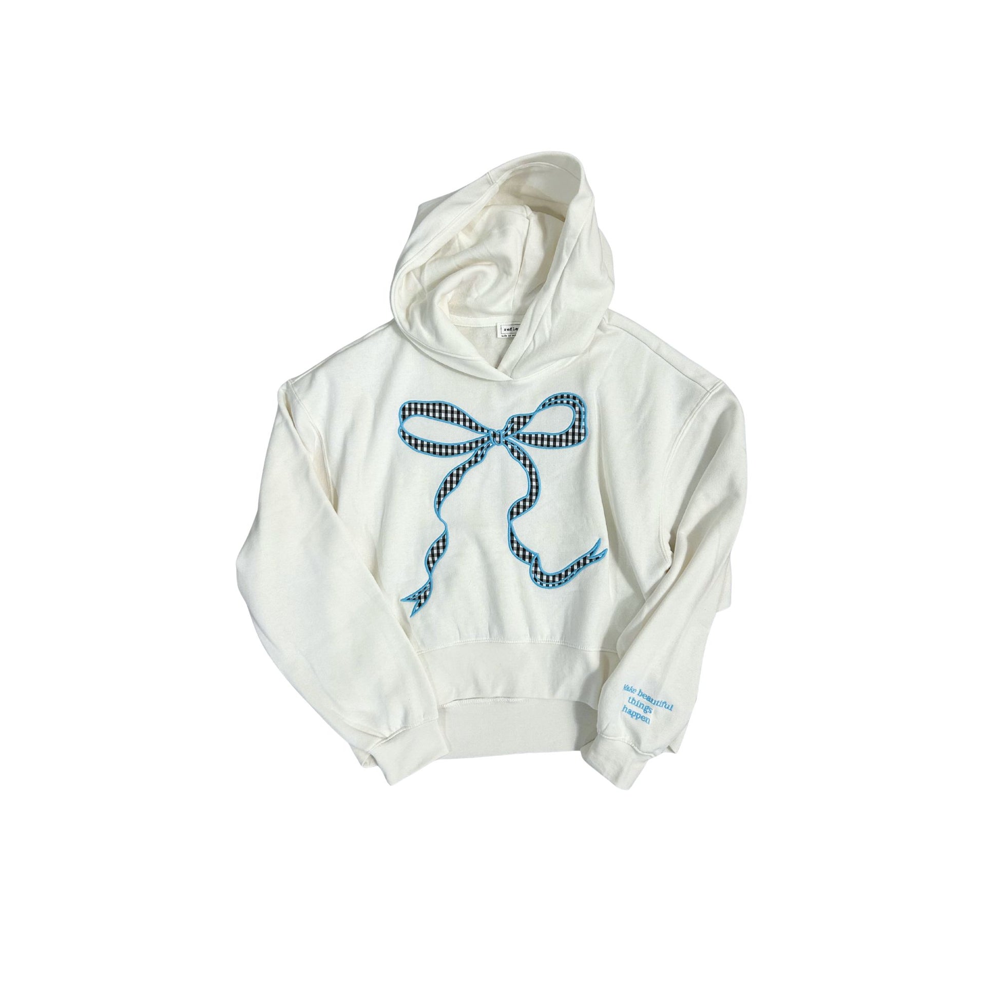 Embroidered Bow Hoodie Sweatshirt - Ivory