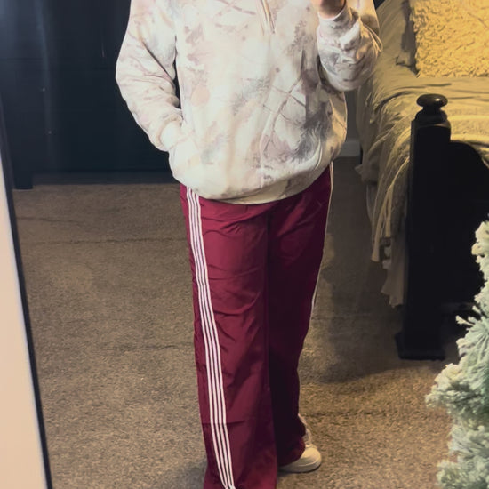 Side Striped Ribbon Tie Track Pants - Vintage Red